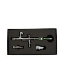 Su sistema de boquilla autocentrada garantiza un flujo de pintura estable y uniforme, permitiendo realizar líneas finísimas, degradados limpios y capas precisas incluso en trabajos delicados. La combinación perfecta entre aguja y boquilla convierte a este aerógrafo en una opción ideal para detalles minuciosos, ilustración, personalización y efectos avanzados.
