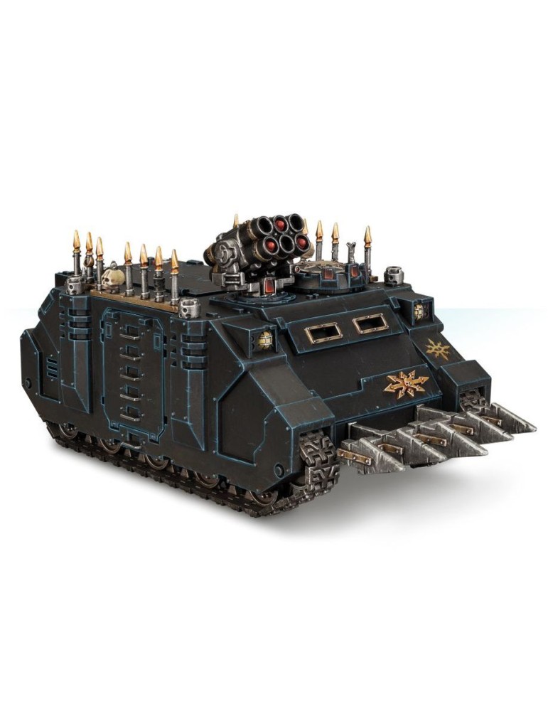 Transporta a tus tropas corrompidas con el Rhino del Caos, un vehículo robusto y personalizable para los Marines Espaciales del Caos en Warhammer 40K. Compatible con múltiples Legiones Traidoras y equipado con opciones de armas y detalles iconográficos del Caos.