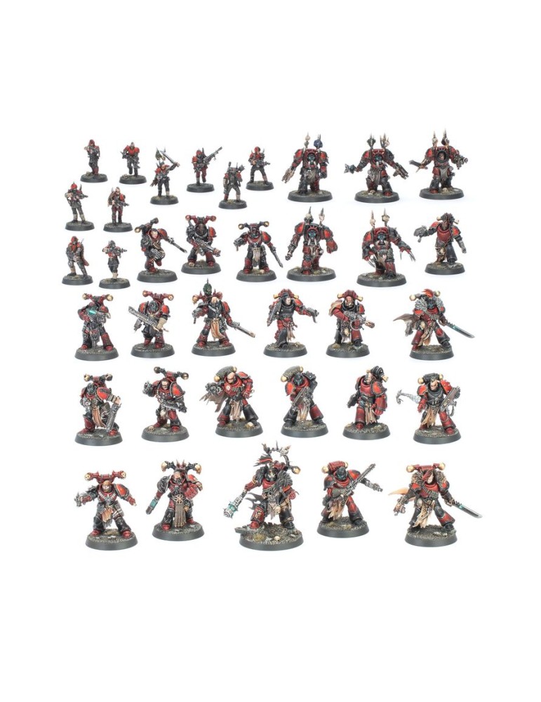 Esta caja es una forma muy rentable de comenzar o ampliar tu ejército de Marines Espaciales del Caos con temática de Corsarios Rojos, reuniendo una fuerza completa y versátil lista para dominar la mesa.