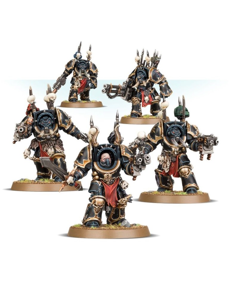 Cinco veteranos blindados hasta los dientes, listos para arrasar con fuego pesado y armas brutales. Personalízalos y conviértelos en la élite de tu ejército del Caos