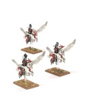 Este kit de plástico de varias piezas permite montar tres Pegasus Knights, una unidad de élite para tu ejército de Kingdom of Bretonnia. Estos guerreros con armadura pesada asestan golpes mortales cuando cargan, pues están equipados con lanzas, espadas y escudos. Las monturas voladoras garantizan que tendrás más oportunidades para lanzarlos contra los blancos a los que causarán más daño, lo que los convierte en una unidad vencedora para cualquier ejército de Bretonnia.