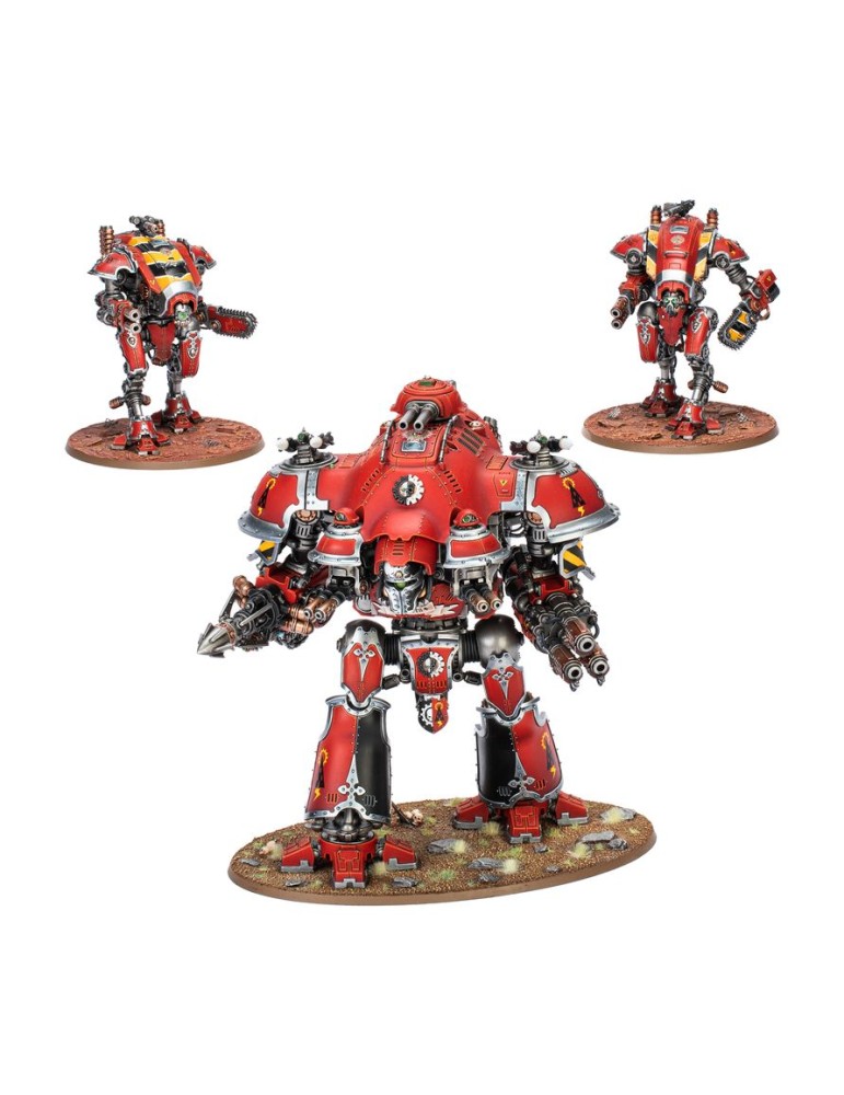 Los Caballeros Imperiales son auténticos dioses de la guerra, colosos blindados pilotados por nobles guerreros que arrasan todo a su paso. En combate, representan la forma más pura del poder destructivo del Imperio… o su reflejo más oscuro en el Ojo del Terror.