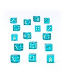 Se trata de un juego de 16 dados de seis caras con esquinas cuadradas, fabricados en plástico acrílico verde azulado con efecto gema y con las muescas en color crema. Cada dado mide 16 mm, un tamaño muy cómodo para jugar, y mantiene el diseño clásico en las caras del 1 al 5, mientras que la cara del 6 incluye el icono pirata de los Corsarios Aeldari. Vamos, una manera estupenda de meter todavía más personalidad a tu ejército sin complicarte la vida.