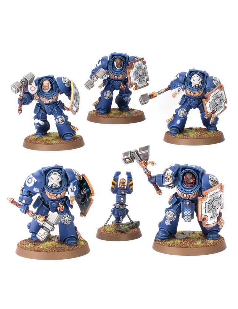 Los Exterminadores de Asalto irrumpen en la batalla con martillos, escudos y garras relámpago, aniquilando a los enemigos más duros con fuerza imparable.