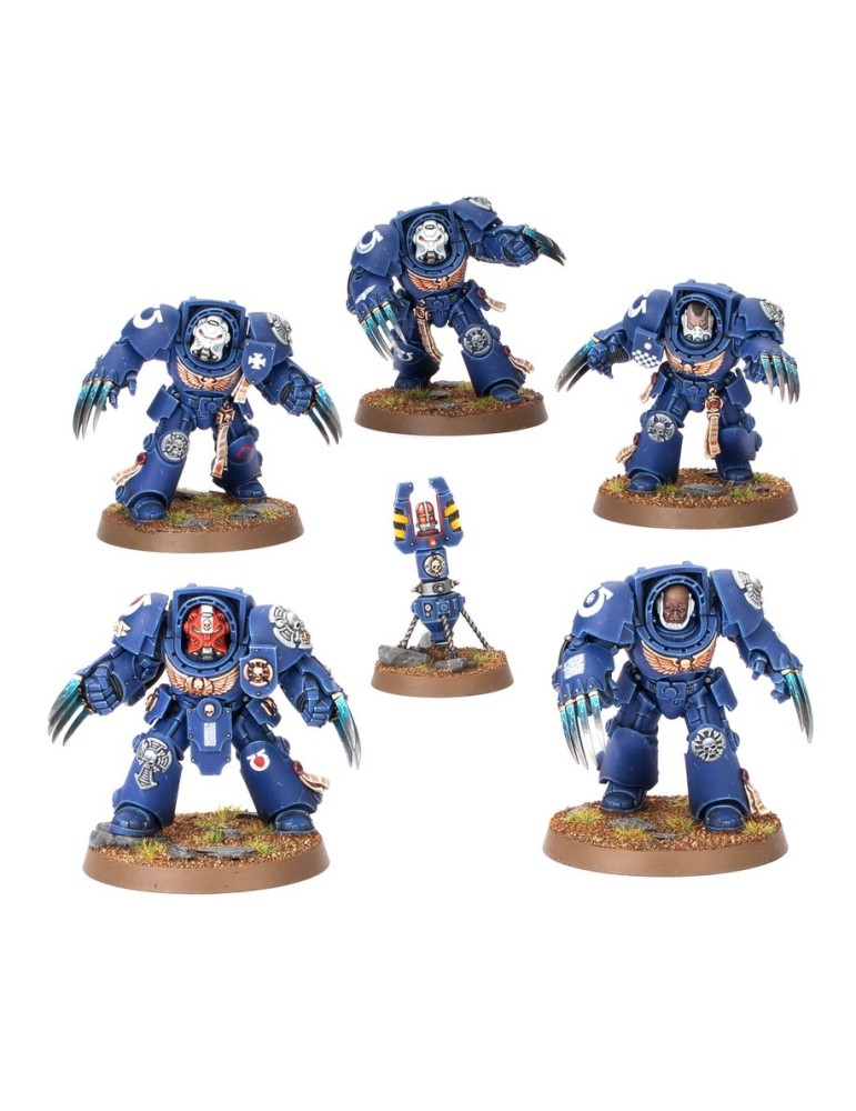 Este kit multicomponente de plástico permite montar cinco Exterminadores de Asalto para tus ejércitos de Marines Espaciales, junto a su baliza de teleportación, perfecta para despliegues tácticos y asaltos sorpresa. Blindados con armaduras de Exterminador, prácticamente ignoran las armas ligeras enemigas, mientras devuelven cada golpe con una contundencia abrumadora.