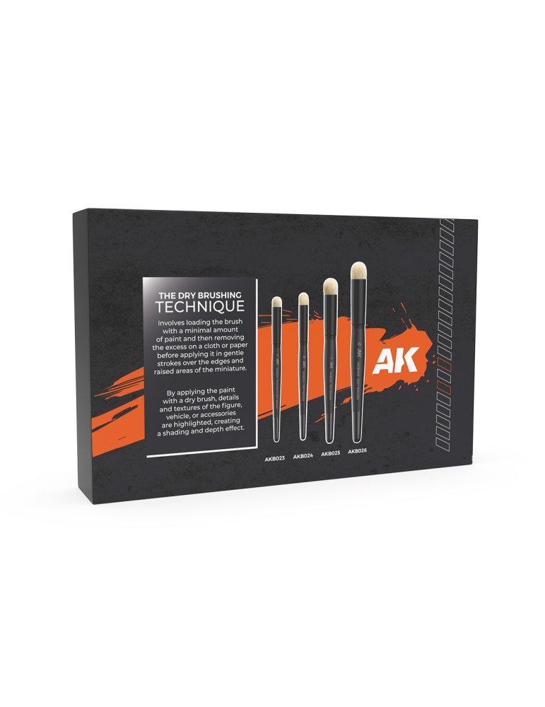 El Set of Dry Brushes reúne cuatro pinceles especialmente diseñados para sacar el máximo partido a la técnica del pincel seco, una de las más utilizadas en la pintura de miniaturas y escenografía. Presentados en una elegante caja, estos pinceles combinan funcionalidad, resistencia y comodidad.