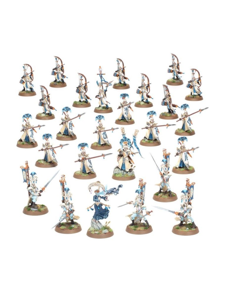 Domina con sabiduría y magia con esta Punta de lanza de los Lumineth Soberanos. Tropas Vanari y una lista Cathallar para canalizar la armonía de Hysh.