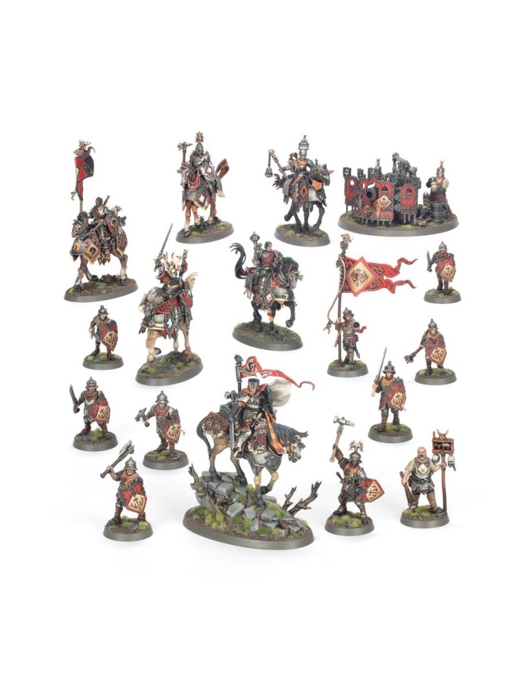 Defiende los Reinos Mortales con esta Punta de lanza de las Ciudades de Sigmar: caballería, infantería y artillería listas para resistir cualquier oscuridad.