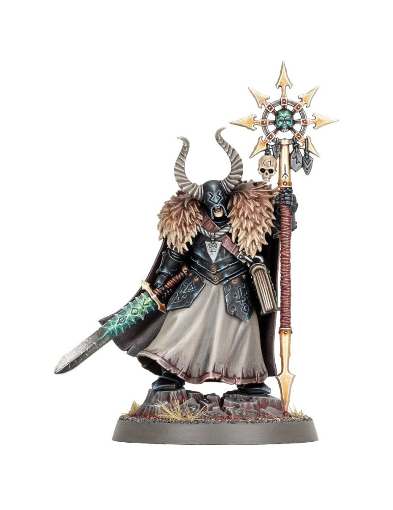 Con este kit multicomponente de plástico puedes montar un Señor Hechicero del Caos, un hechicero guerrero de aspecto salvaje que fortalecerá tus ejércitos de Esclavos de la Oscuridad. Ataviado con una armadura pesada y empuñando una espada rúnica pesada y un Báculo de hechicero, está preparado para aplastar a los enemigos desde primera línea de batalla. En la caja encontrarás dos cabezas igual de aterradoras y dos extremos diferentes para el báculo, para que puedas personalizar tu miniatura de forma muy sencilla.