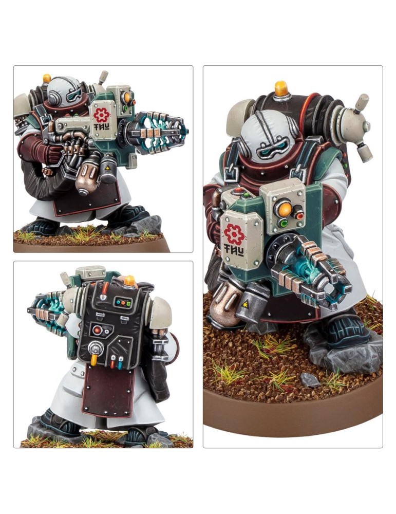 Cubiertos con armaduras especializadas para soportar los peligros de sus propios inventos, estos guerreros del conocimiento representan un peligro para cualquier enemigo y un recurso táctico excepcional en tu ejército.