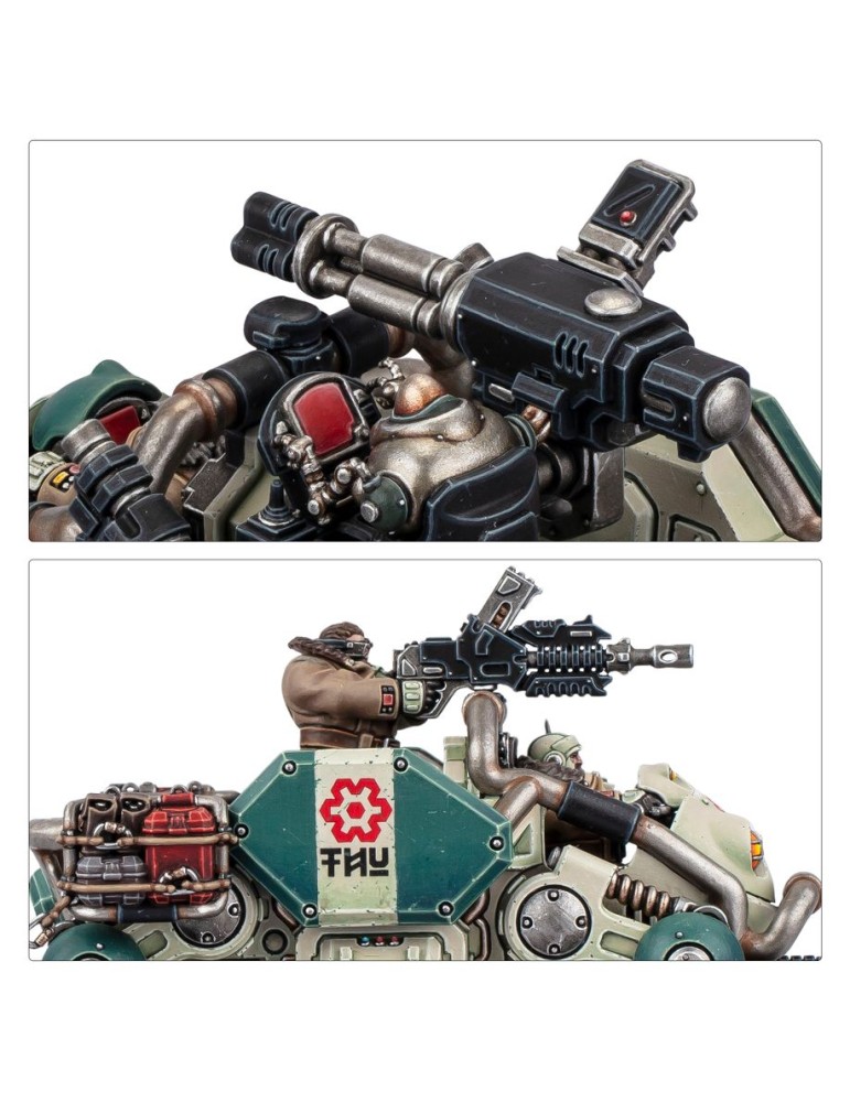 Los Káprica son vehículos de diseño modular altamente avanzados utilizados por las Ligas de los Votann. Rápidos, resistentes y extremadamente funcionales, están diseñados para cumplir misiones clave en el campo de batalla, ya sea arrasando enemigos desde la distancia o transportando tropas vitales hacia posiciones estratégicas.