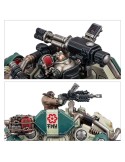 El Káprica Defensor es una plataforma de apoyo móvil equipada con potentes armas montadas en afuste exterior, ideal para eliminar tanto blindajes como infantería. Puedes configurarlo con un cañón de magnetorriel, capaz de atravesar armaduras pesadas, o un multicañón LasMAX para barrer formaciones enemigas.