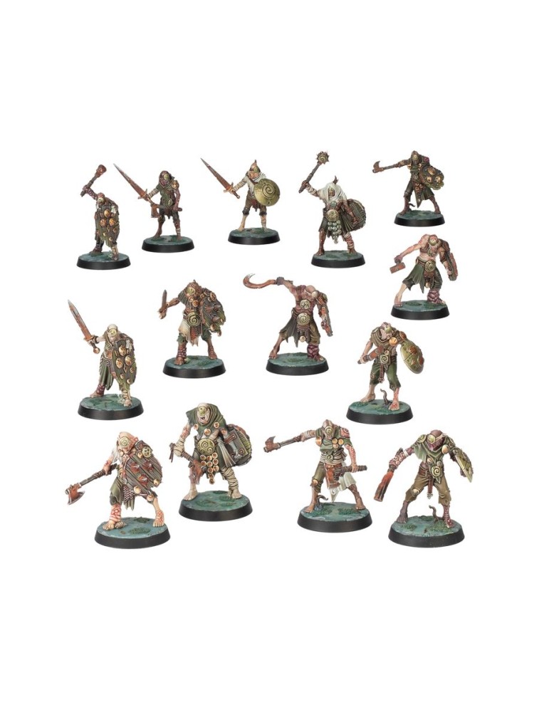 El kit incluye 211 piezas de plástico y una amplia variedad de peanas Citadel con agujeros hexagonales. Todas las miniaturas son de encaje a presión y pueden montarse sin pegamento, pero requieren montaje. Se suministran sin pintar; se recomienda usar pinturas Citadel Colour.